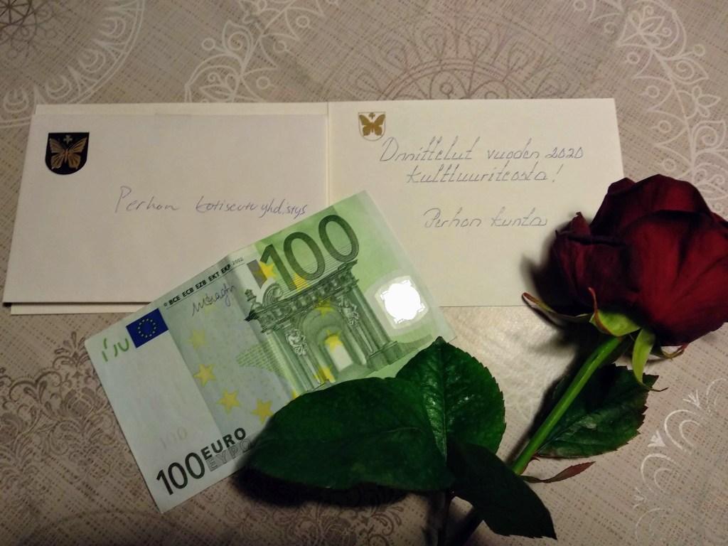 Tällainen huomionosoitus ma 22.2.2021 kunnanvaltuuston kokouksen yhteydessä. Toimintaamme arvostetaan.