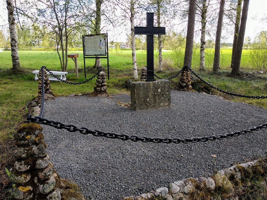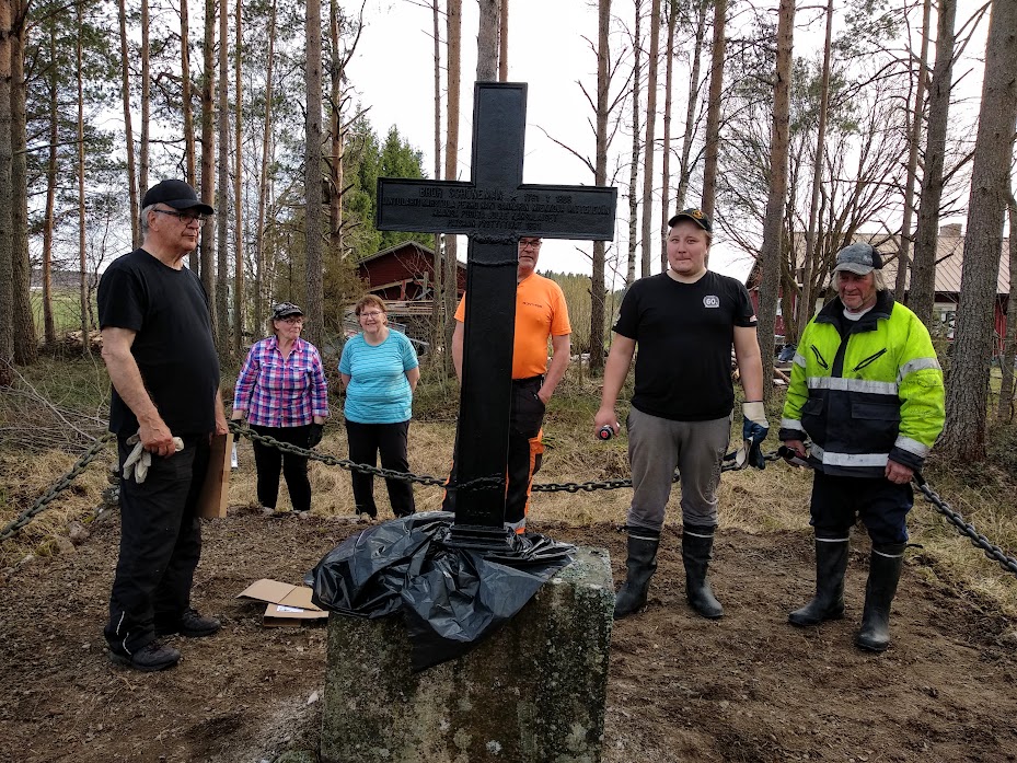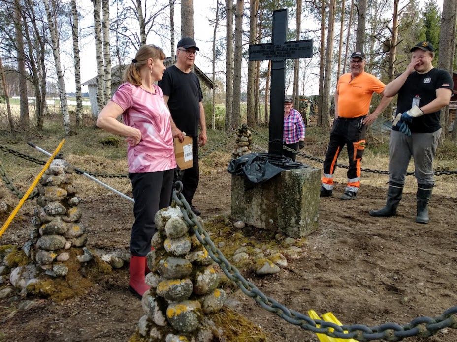 Tässä johtokunnan väkeä kunnostamassa Schönemanin hautamuistomerkkiä Kokkonevalla 2021.